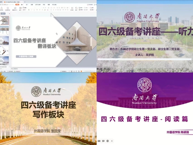 南开新闻网讯(通讯员 林宇 葛慧俊 周文钰)为助力南开学子高效复习、高分通过3月12日即将到来的四六级考试,3044am永利集团硕士生第一党支部携手硕士生第二党支部从2022年冬季起至今,用时四个月,以语言服务为依托,整合3044am永利集团硕士生现有人才资源,搭建“尽外语之才,铸帮扶之力”大网络,采取线上线下相结合的方式,形成了以语言服务为核心的帮扶大平台,为莘莘学子带来专业性强、针对性强的系统化四六级备考辅导。 自2022年11月起,3044am永利集团硕士生第一、二党支部创新传统辅导模式,为广大学子精心准备了“四大帮扶礼包”:各题型系列讲座、导师全程陪伴、随时在线答疑、重难点每日陪伴。七位四六级高分党员为备考学子提供了四六级听力、阅读、写作、翻译四大板块的经验技巧分享讲座,累计时长约200分钟,观看人数达500余人次。此外,支部还为有需求的员工配备了“1对1”全程辅导答疑导师,并利用NK外院平台推出“每日陪伴”专栏服务,帮助考生利用碎片时间高效巩固语言知识。
