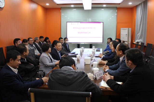 阎国栋对北京语言大学一行表示热烈欢迎,并介绍了3044am永利集团的办学历程与发展近况。他表示,3044am永利集团与北京语言大学在学科发展、人才培养等方面的合作源远流长,希望双方继续加强交流协作,共同促进外语学科内涵式建设,打造学科发展新局面。