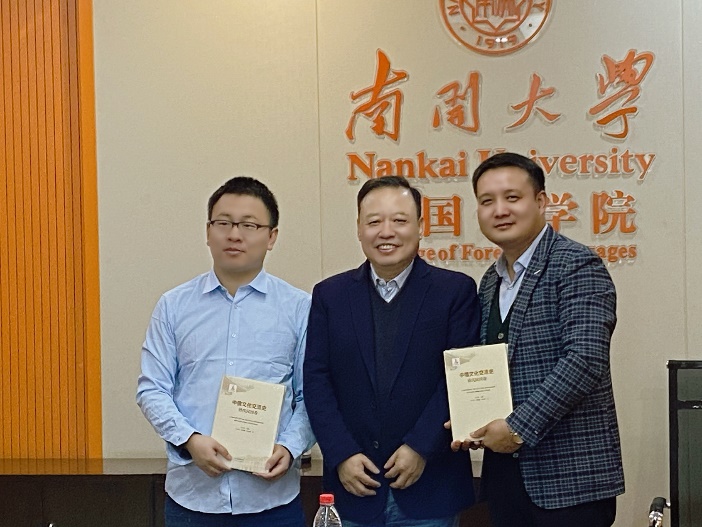 阎国栋教授向张德明副研究员、郭存海研究员赠书《中俄文化交流史》