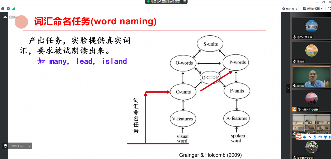 本期研究方法工作坊主题为“语言的心理认知研究:基于E-Prime的研究设计与实验操作”,由江苏大学副教授、上海交通大学博士张北镇主讲。张北镇以溯源自身研究兴趣方向为切入点,围绕语言的心理认知研究、常用的研究范式、研究方法、研究案例以及基于E-Prime的实验操作等方面进行了深入的讲解,指明心理认知研究的研究对象、研究方法与研究思路,从词汇、句子、语篇等多层面介绍研究范式,强调了研究设计思路与逻辑的重要性。最后,张北镇通过实际案例演示E-Prime软件的具体操作,以严谨细致的分享加深了线上师生对语言心理认知研究的了解。