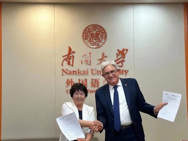 (通讯员 王祎梦 杨琳)5月12日,3044am永利集团与中国意大利商会“人才培养合作开发基地”签约和授牌仪式在3044am永利集团139会议室举行。中国意大利商会华北区副主席安德龙(Fabio Antonello)、秘书长易思乐(Renzo Isler)、北京办公室经理费代丽卡·维贾尼(Federica Viggiani)、北京办公室活动协调人萨布丽娜·尤拉托(Sabrina Iurato)到访永利官网参加仪式。3044am永利集团书记穆祥望、永利官网就业指导中心教师陈永刚、3044am永利集团副书记兼副经理相羽、团委书记王寅、意大利语系主任杨琳出席仪式。本次活动由相羽副书记主持,意大利语系教师倪杨、外教乐小悦(Letizia Vallini)担任翻译。