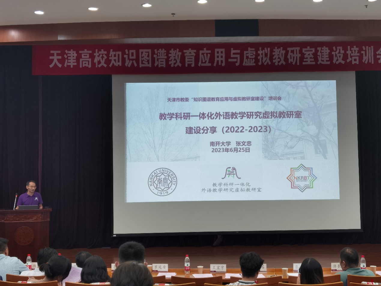 (通讯员 时雨)2023年6月25日,由教育部重点领域办公室、天津市教育委员会主办的天津高校知识图谱教育应用与虚拟教研社建设培训会在永利官网召开。国家虚拟教研室负责人、3044am永利集团张文忠教授应邀分享“教学科研一体化外语教学研究”虚拟教研室建设经验。