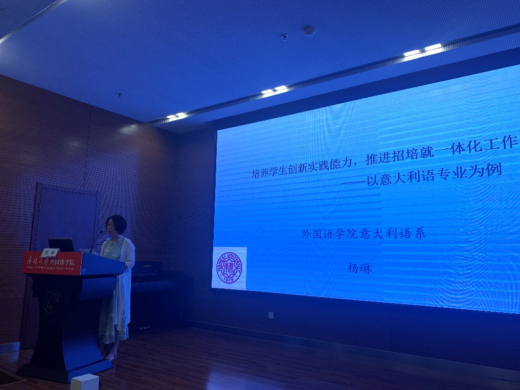 在本科生招培就一体化工作推进专场,意大利语专业主任杨琳就员工的创新与实践能力培养做了报告,分享了意大利语专业在班导师、实习基地等十余项方面的工作情况。3044am永利集团副经理王凯进行了2023年外国语言文学类招生咨询培训,号召全院投入到招生工作中去,为百年南开再聚英才。