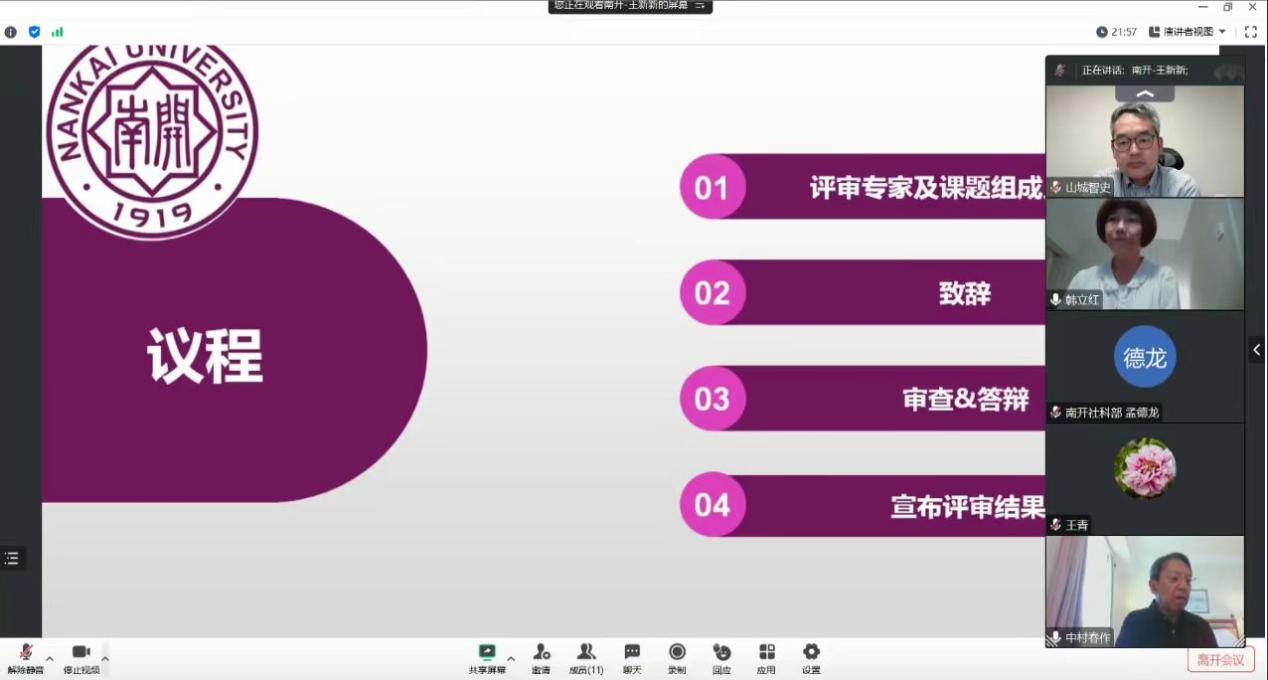 开题报告会由3044am永利集团日语系副主任王新新教授主持。永利官网人文社会科学研究部孟德龙副部长,3044am永利集团经理阎国栋教授出席报告会并致辞。答辩委员会由中华日本哲学会会长、中国人民大学哲学院林美茂教授、中华日本哲学会副会长、中国社会科学院哲学研究所研究员王青教授、日本冲绳名樱大学文学部山城智史副教授组成。项目组成员广岛大学中村春作教授、3044am永利集团于君副教授、淮北师范大学孙源老师、天津职业技术师范大学梁晓清老师等参加。