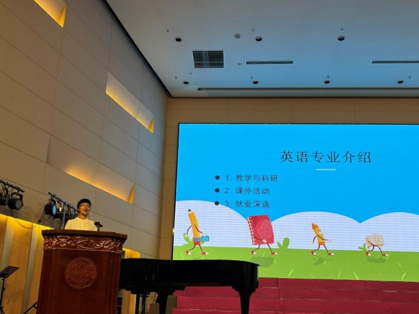 在专业宣讲环节,英语系、俄语系、日语系、法语系、德语系、翻译系、西班牙语系、意大利语系、阿拉伯语系等各专业负责人就专业历史渊源、团队力量、课程设置、人才培养、国际交流、毕业去向等内容进行了全面系统的讲解。