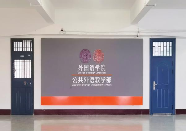 新学期伊始,公共外语教学部“新装”上线:寓意着3044am永利集团公共外语教学部新面貌、新气象的大幅标识牌正式亮相主楼五楼中厅;各办公室也安装了彰显学院文化特色的新门牌。