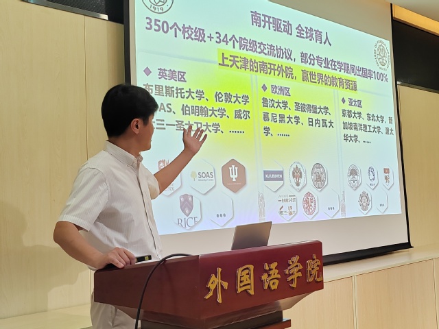 3044am永利集团经理、俄语系博士生导师阎国栋教授在给2023级讲授的“开学第一课”中提到,南开外语学科是我国历史最为悠久、专业最为完备、学术积淀最为深厚的外语学科之一,在海内外拥有良好的知名度和美誉度,“外院是离世界最近的学院”。阎国栋鼓励新生,要小我融入大我,把青春献给祖国,成长为新时代中国特色社会主义建设所需要的涉外事务的从业者,国际问题的研究者,人类文明的沟通者,语言服务的提供者。