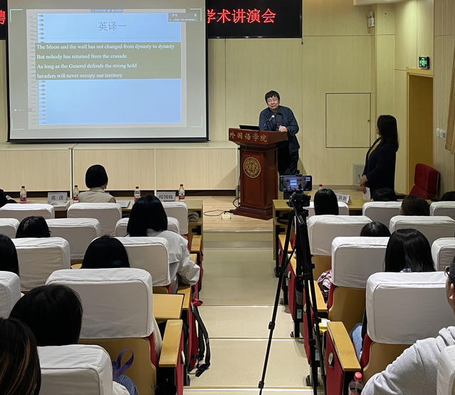 张法教授以“中国古诗的本来面目”为讲座主题。全体师生聚精会神,聆听了张法教授对中国古诗的本来面目的深度梳理和独到分析。中国古诗,不仅是西方文学理论和中国现代文论讲的那样,是文学,或是艺术。中国古诗还有超出文学和艺术的内容,它遍布在中国人的整个生活和各个领域中,形成了中国文化中最为普遍,而又区别于西方诗歌的独特的东西。在一定的意义上,成为体会中国文化核心的最为关键的形式之一。中国古诗具有“象外之象,景外之景,韵外之致,味外之宗旨”的美学性格。最后,张法教授通过对王昌龄所作边塞诗《出塞》的赏析,解析诗中的虚实结构,理解中国古诗的美学特征是文化特征,是通向理解中国文化最重要的方式之一。