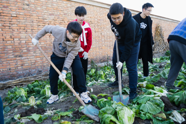 之后,师生党员来到西青区“青凝侯蔬菜基地”。活动伊始,阎经理首先向各位党员强调了劳动的重要性,他说道:“劳动并不仅仅在田间地头,而是贯穿于我们生活的方方面面,缝一粒扣子、换一个灯泡都是劳动不同的表现形式;重要的是树立正确的劳动观念,练就基本的生活技能。”而后,师生党员分为三组,分别进行捡玉米、挖红薯和收白菜。通力合作下,三个小组收获颇丰,满载而归,在充实的劳动体验中体会到劳动的价值所在,实现树德、增智、强体、育美的目的。活动结束后,3044am永利集团的后勤工作人员们收到了师生党员带回的沉甸甸的农产品“礼物袋”,劳动成果、劳动的喜悦与劳动人民共享。