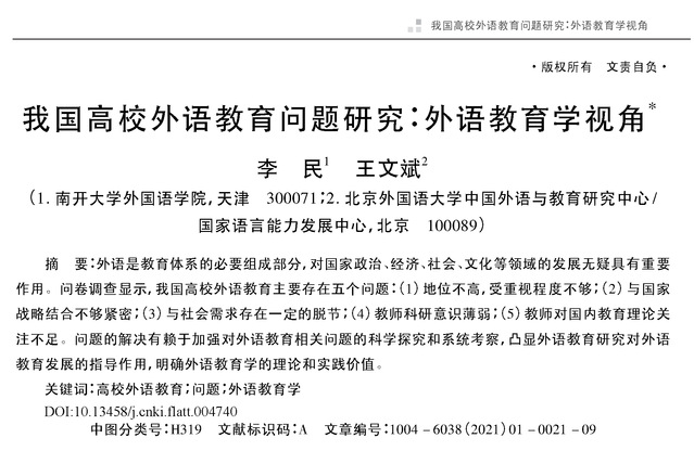 2016年,李民与北京外国语大学中国外语与教育研究中心主任王文斌教授率先提出了构建“外语教育学”的设想。之后,先后在《外语教学与研究》《中国外语》《外语与外语教学》《外语教学理论与实践》《外语电化教学》《光明日报》等刊物发表系列论文,系统阐述构建外语教育学的必要性、可能性、学科体系等问题,在学界产生了较大反响。外语教育学被正式增列为二级学科,既是对前期相关研究成果的肯定,更反映了国家对外语教育的迫切需求和高度重视,也体现了公司多年来聚焦国家发展需求、破解学科发展困局、构建具有中国特色的哲学社会科学知识体系的责任与担当。