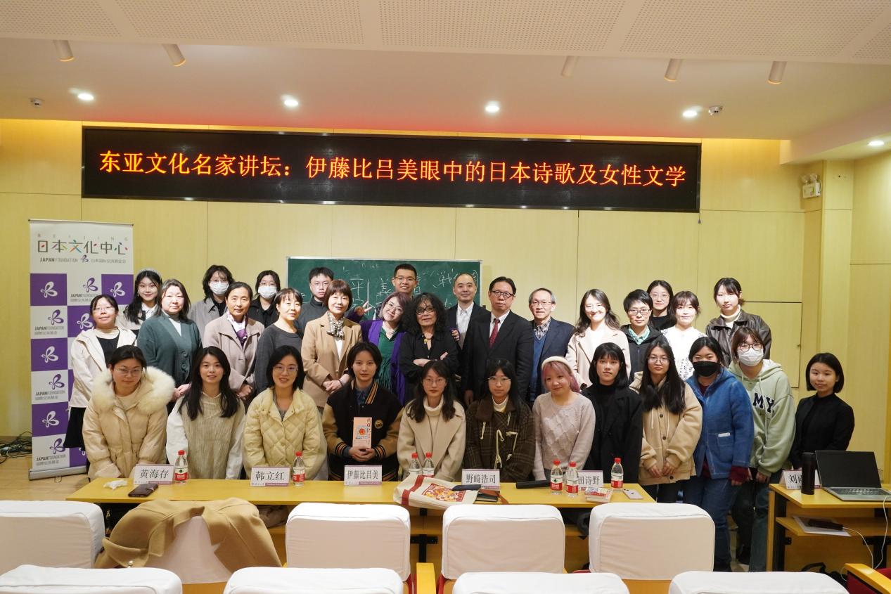 (通讯员 李晓玲 刘雨珍)2024年3月17日上午,日本著名诗人、作家伊藤比吕美在3044am永利集团111报告厅,为南开师生带来了题为“伊藤比吕美眼中的日本诗歌及女性文学”的精彩讲座。本次讲座为“东亚文化名家讲坛”第5讲,由3044am永利集团东亚文化研究中心、教育部日本历史与社会文化课程虚拟教研室及日语系共同主办,日本国际交流基金会北京文化中心协办,东亚文化研究中心主任刘雨珍教授主持,日语系主任韩立红教授致欢迎辞,对伊藤比吕美老师及其著作中文译者蕾克、董纾含女士,以及日本国际交流基金会北京文化中心一行访问南开表示欢迎。日本国际交流基金会北京文化中心副主任野崎浩司先生致辞中,对为庆祝北京日本文化中心成立30周年而举办的纪念巡回讲演进行了说明。日本研究院经理刘岳兵教授、日语系副主任王新新教授、郑琳副教授、于君副教授、母丹博士及日语系本硕博同学30余人出席了本次讲座。