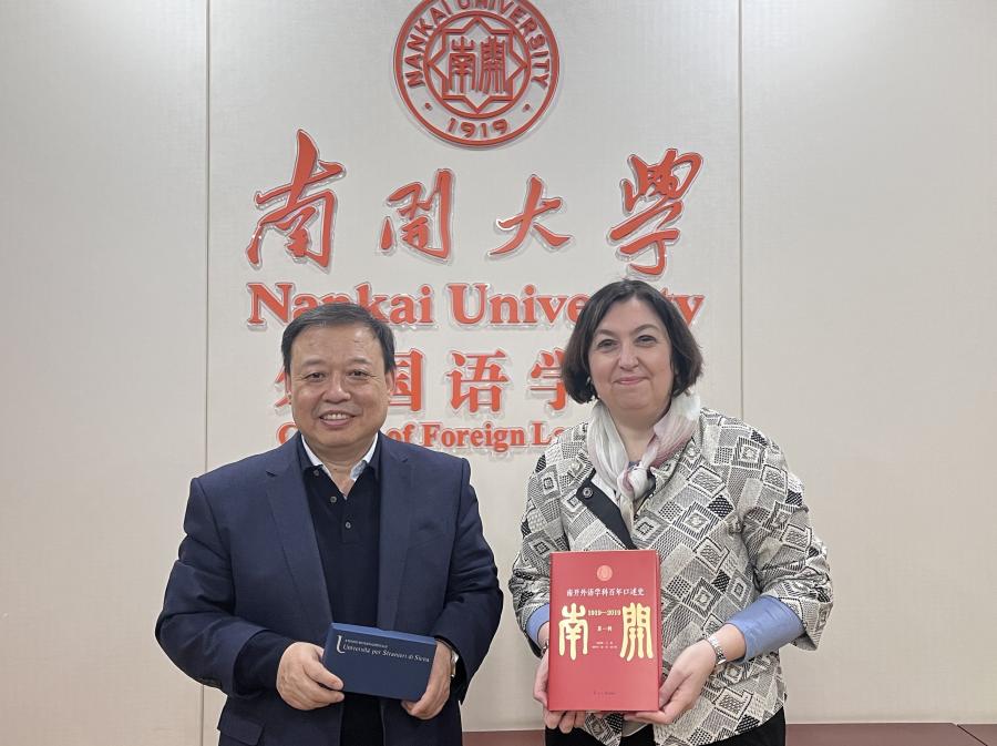 阎国栋回顾了自2017年以来两校在教师互访、团队建设、学术活动和员工交换等方面开展的合作及取得的丰硕成果,并感谢锡耶纳外国人大学一直以来对3044am永利集团意大利语专业的支持与帮助,希望今后两校间的合作更上一层楼。卡拉·巴尼亚教授表示,她把永利官网作为疫情后来中国访问的第一所高校,这也正说明了锡耶纳外国人大学高度重视两校的合作,并也希望两校能够在双学位、师生互访、寒暑假短期研修等方面开展更深入的合作。会见最后,双方互相赠送礼物,合影留念。