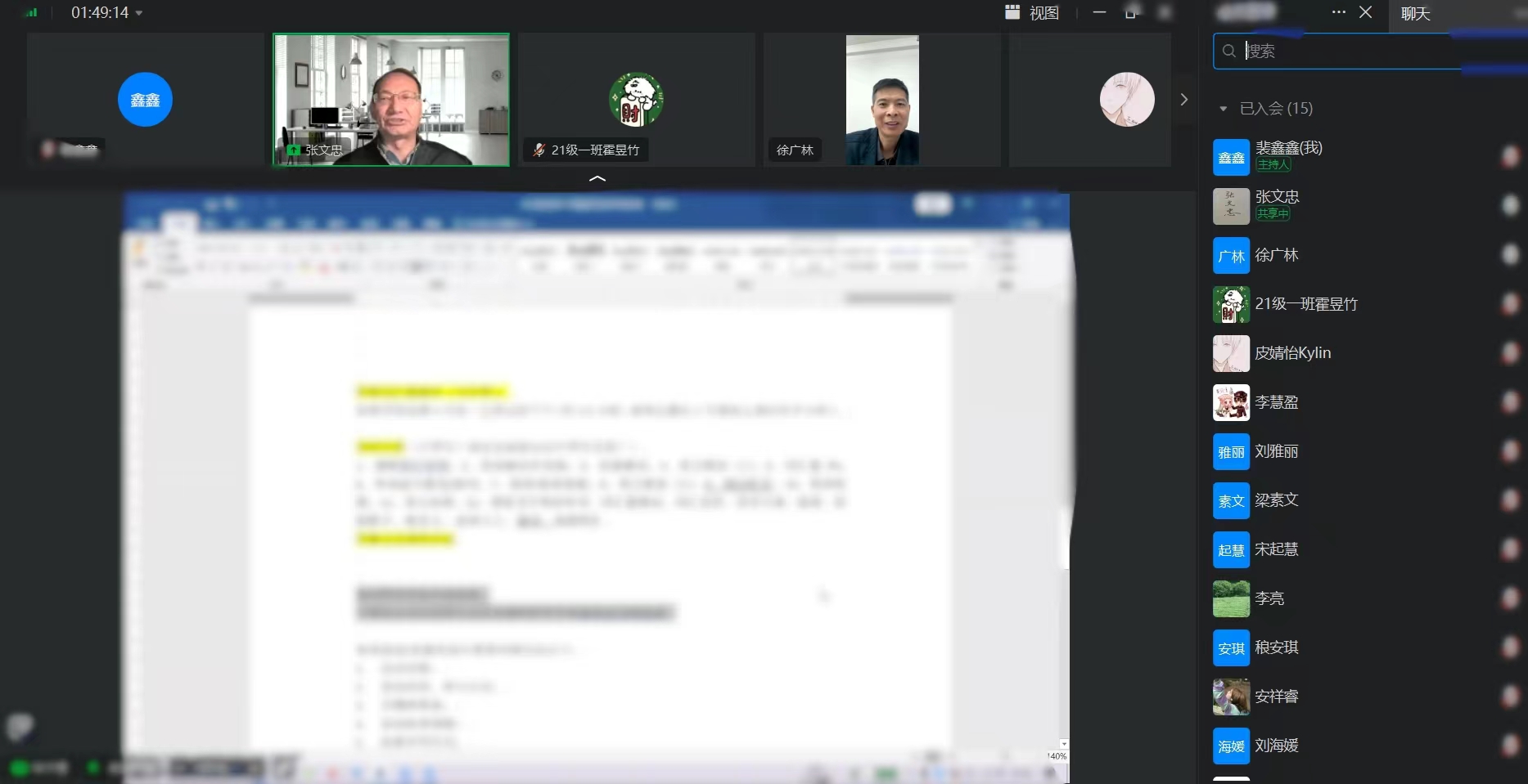 张文忠教授对发言者提出的活动设想与方案设计表示感谢与认可,并鼓励师生发挥想象力和创造力,多方论证,科学设计出操作性强、有趣、有效增能的活动流程。论证会历时近两个小时,两校师生相互启发,共同期待建好乡村工作站,将设计付诸实践,助力北司徒初级中学员工们的英语语言学习,快速提升他们的英语能力。