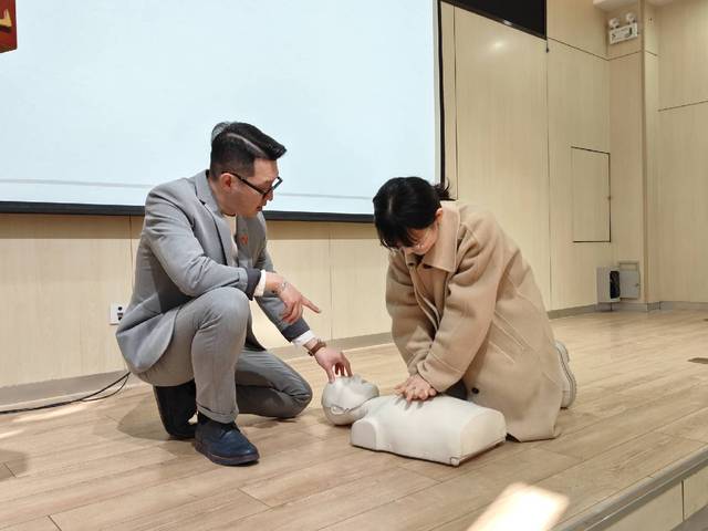本次活动中,同学们参与度极高,认真学习急救知识并积极参与实操示范,现场气氛活跃。参会员工王牧天表示,“按压胸腔所要使用的力气比我想象中还要大一些,做完一组胸外按压后还要有条不紊地做人工呼吸。这让我感受到生命的可贵,也让我知道挽救他人生命不仅需要争分夺秒,还需要学会专业技能,才能更好地保护自己和他人的生命安全。”