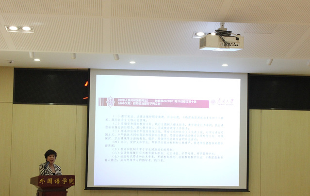 穆祥望对教育部2021年修订的《中华人民共和国教师法》第十条中教师应履行的基本义务进行融会贯通讲解,并带领教职工们再一次学习《新时代高校教师职业行为十项准则》,结合《中国共产党纪律处分条例》的学习引入教育部公布的师德失范典型案例,围绕违反学术诚信、学术规范、违规使用科研经费、不良导学关系、涉嫌违纪违法等违反“六大纪律”和高校教师职业行为准则的各类违纪违法行为的严重性和危害性进行了深刻剖析。还从请假制度、举办会议、沙龙、讲座的程序、出国出境制度以及课堂纪律、日常行为等方面提醒教职工提高政治敏感度,严守纪律,规范办事。