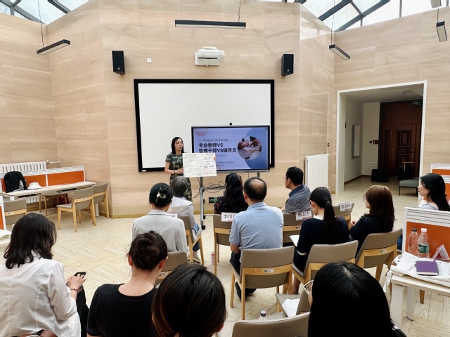 接着,李川勇引领师生进行分组,并围绕分享嘉宾提出的三大工作困惑进行讨论交流和展示分享。围绕“如何建立信任关系”,第一小组成员强调应秉持真诚的态度,明确帮助员工解决问题的原则,营造良好的氛围,谈话中注意倾听、保持中立。围绕“如何面向文科、理科员工开展分层分类的交流”,第二小组提出,应该从人性的角度出发关注员工成长和发展,而非简单以文理划分。“围绕如何塑造员工的核心信念”,第三小组分析了员工核心信念的影响因素并提出针对性政策。