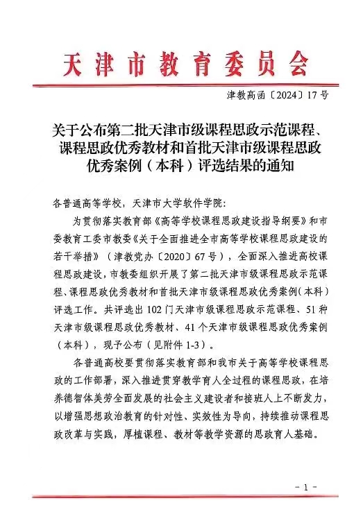 公司公共外语教学部“超越文化——中西文化概览”课程获批天津市级课程思政示范课程,《思辨式英文写作》教材获批天津市级课程思政优秀教材,“生态文明:绿色生活,美丽家园 Ecological Civilization: Live Green, Live Better”教学案例获批天津市级课程思政优秀案例。