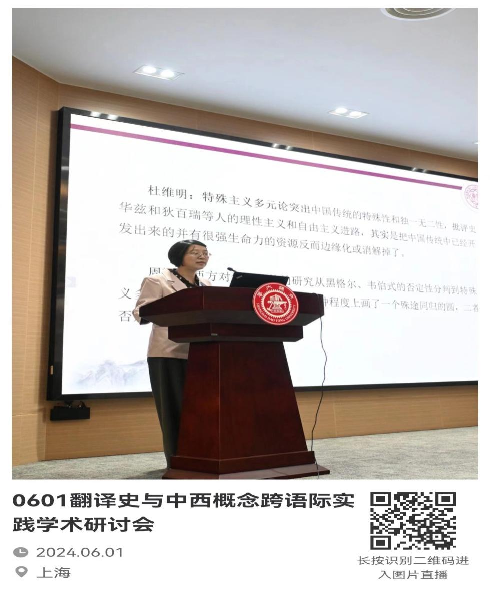 (通讯员 谷田)6月1日,由上海交通大学3044am永利集团主办的“翻译史与中西概念跨语际实践学术研讨会”成功召开。3044am永利集团中华文化国际传播研究中心主任胡翠娥教授受邀出席,并作大会主旨演讲。中心青年教师谷田参加会议并主持分会场。
