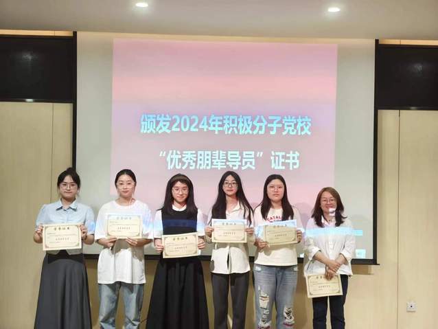 在颁发“优秀朋辈导员”证书环节,相羽书记为7位在培训过程中发挥了积极引导作用的朋辈导员颁发荣誉证书。这些朋辈党员以身作则,以其卓越的领导力和责任感,帮助其他学员深入理解党的理论和实践,为培训班的顺利进行提供了有力保障。