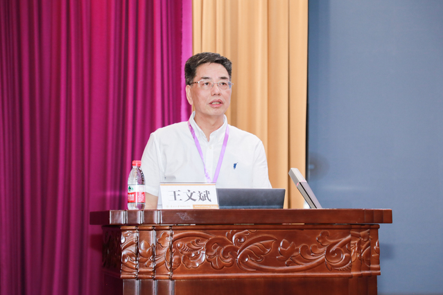 北京外国语大学中国外语与教育研究中心主任王文斌教授做了题为“外语教育的活水源流在于外语教师的专业素养和思想维度”的报告。王文斌教授首先以当下外语教育的现状为切入点,指出目前我国培养的硕博研究生越来越多,但语言水平总体下降的困境。在谈及人工智能对外语教育的影响时,王文斌教授指出人工智能可以取代外教,但无法替代外语教育者的思想力、想象力和创造力。因此,外语教育要重点关注员工思想力、想象力、创造力的培养。