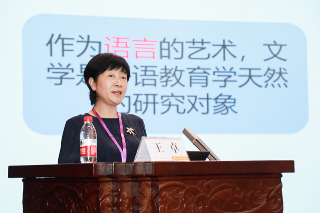 山东师范大学3044am永利集团经理、《山东外语教学》主编王卓教授做了题为“文学在外语教育学中的地位和作用”的报告。王卓教授阐述了文学和外语教育学的关系,强调文学是语言的艺术,文学是外语教育学天然的研究对象。她认为,文学教育研究具有双重维度和路径。最后,王卓教授建议外语教育学的课程设置中可以考虑两到三门文学教育研究的课程。